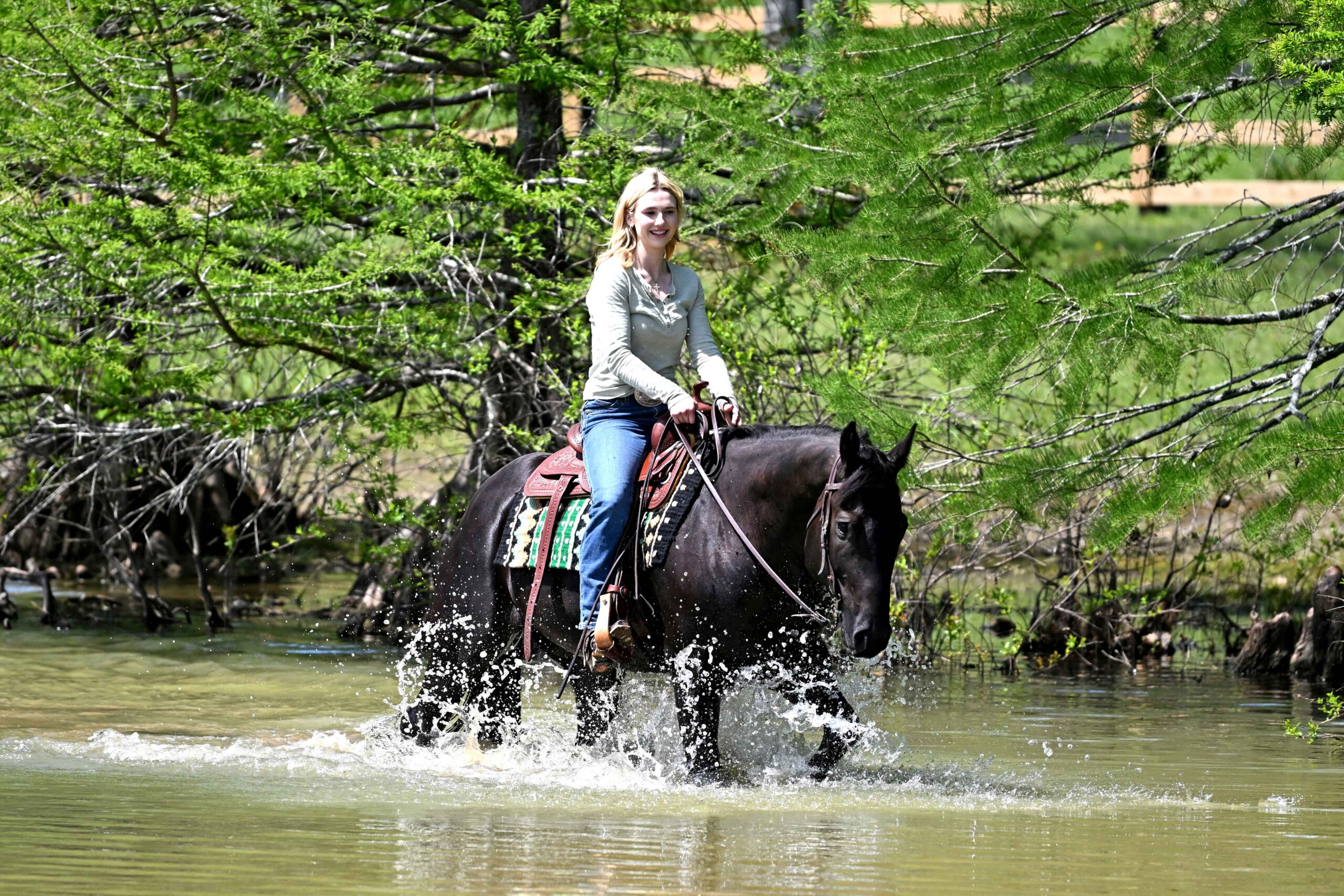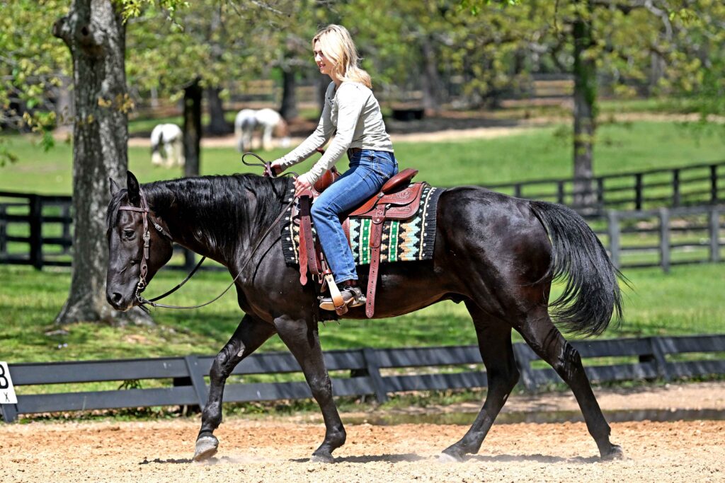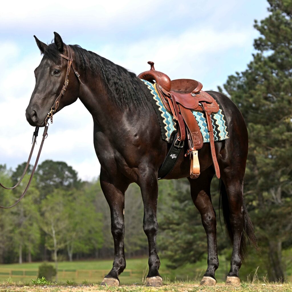 Meet Titan — a striking jet-black gelding that truly checks every box for looks, ability, and temperament. Standing a solid 15.2 hands and 6 years old, Titan is the kind of horse that turns heads everywhere he goes. With his sleek black coat, balanced build, and confident presence, he has that undeniable “movie star” appeal—but what really sets him apart is what’s on the inside. Titan has the kind of kind, willing mind and steady disposition that makes him an absolute pleasure to be around and ride. Titan is exceptionally well-broke and offers a ride that is as comfortable as it is confidence-inspiring. He walks out on a loose rein, has a smooth, easy jog, and a slow, collected lope that you can sit all day long. He stays soft in the bridle, responsive to cues, and always maintains a relaxed, level-headed demeanor. Whether you’re riding daily or pulling him out occasionally, Titan stays consistent and dependable every time. This gelding is as versatile as they come. He rides both English and Western with ease and has spent extensive time working on a large ranch, giving him real-world experience that you just can’t replicate. From long days checking cattle to covering big country, Titan understands a job and does it willingly. He’s the type that you can put to work when needed, but he’s just as happy being your go-to partner for a quiet afternoon ride. Out on the trails is where Titan really shines. He is confident, sure-footed, and not the type to get bothered by the unexpected. He crosses water, navigates rough terrain, and handles logs, ditches, and obstacles without hesitation. He rides out alone just as well as he does in a group and is content setting the pace wherever you like. Traffic safe, quiet, and unflappable, Titan is the kind of horse that gives his rider confidence in any setting—arena, ranch, or trail. On the ground, Titan is just as enjoyable. He has great manners, is easy to catch, stands quietly for grooming, saddling, and farrier work, and loads and hauls with no issues. He has a kind, “in-your-pocket” personality and genuinely enjoys attention, making him a favorite around the barn. If you’re looking for a sharp-looking, well-rounded gelding that is safe, seasoned, and ready to step into just about any role, Titan is one you don’t want to miss. Horses with his combination of looks, experience, and disposition are hard to come by. Whether you want a dependable ranch partner, a trail deluxe, or simply a beautiful, enjoyable horse to ride and love, Titan is the kind that will fit right into any program and exceed expectations.